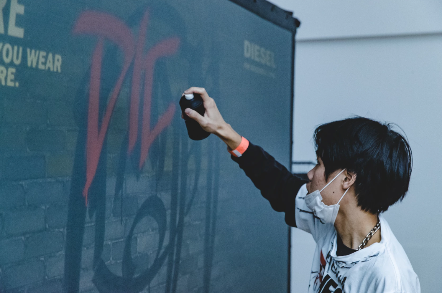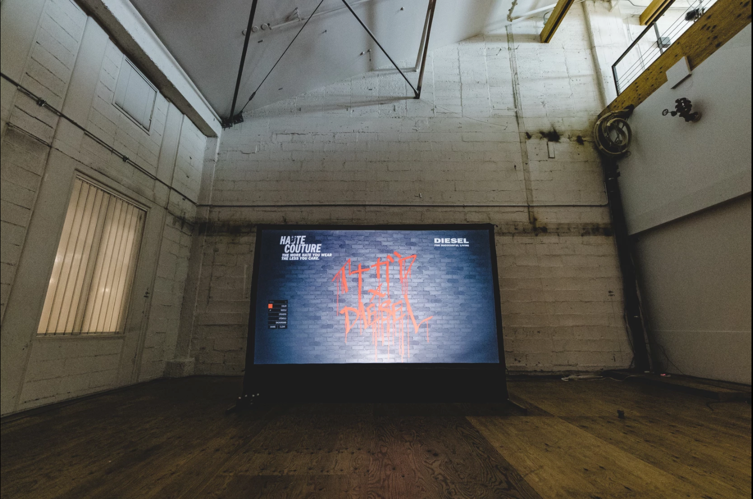 Art direction Interactive installation Event space design Event of Diesel for a new collection. We made a fashion show with performers, music live, DJ and activities for visitors like Digital graffiti, photocall mapping, bar and buffet.